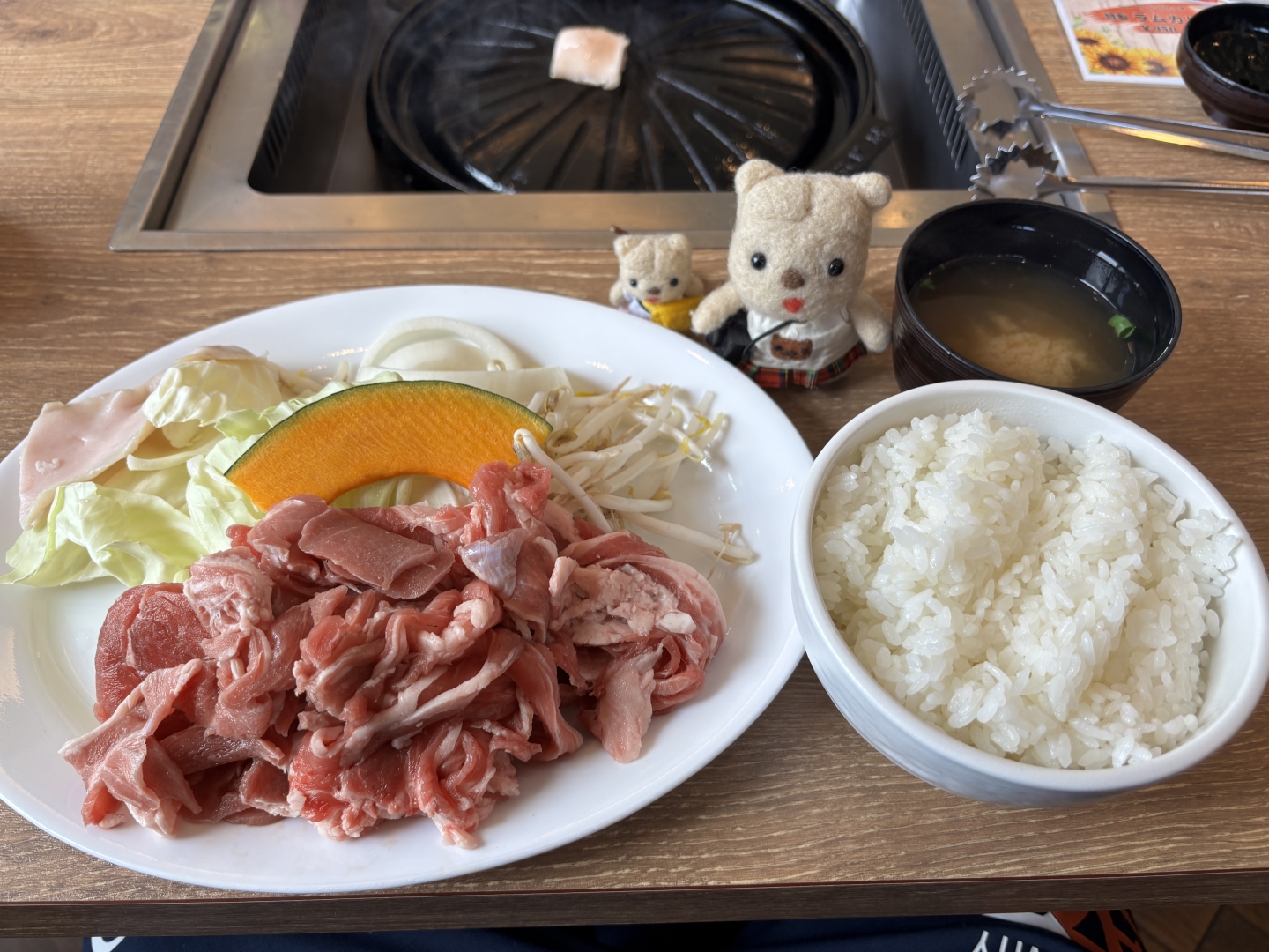 「ジンギスカン定食・250g」をチョイス!定食なのでライスとみそ汁もセットで付いてくる。